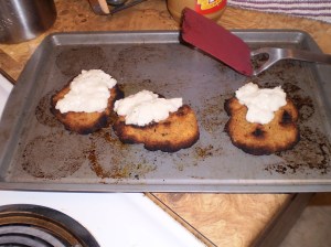 That was frozen chicken-fried steak, and the tapioca pudding-like substance was gravy. It was a thing. Poor representation of what she is capable of.