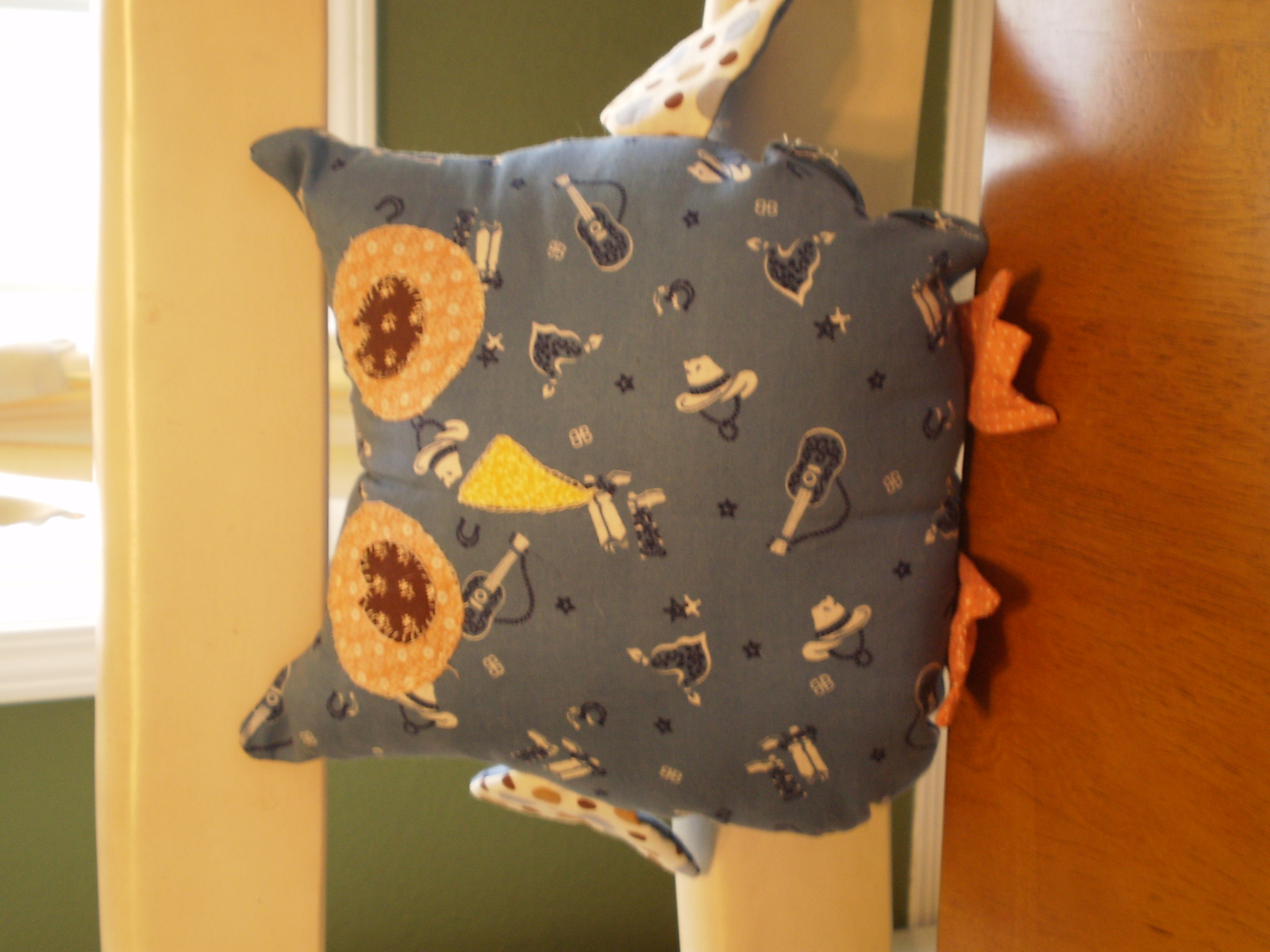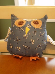 2. Look Online for Templates: Some homemade toys require considerable amounts of skill to craft together, but many don’t. One of my favorite (and super easy) templates came from Toad’s Treasures, a blog by Emily Ashby. This sweet and simple owl template is not only adorable, it’s also versatile. You can use any fabric combination you want, and you could make the owl as large or as small as your imagination will allow. Here’s the one I made this weekend for Little in about an hour: