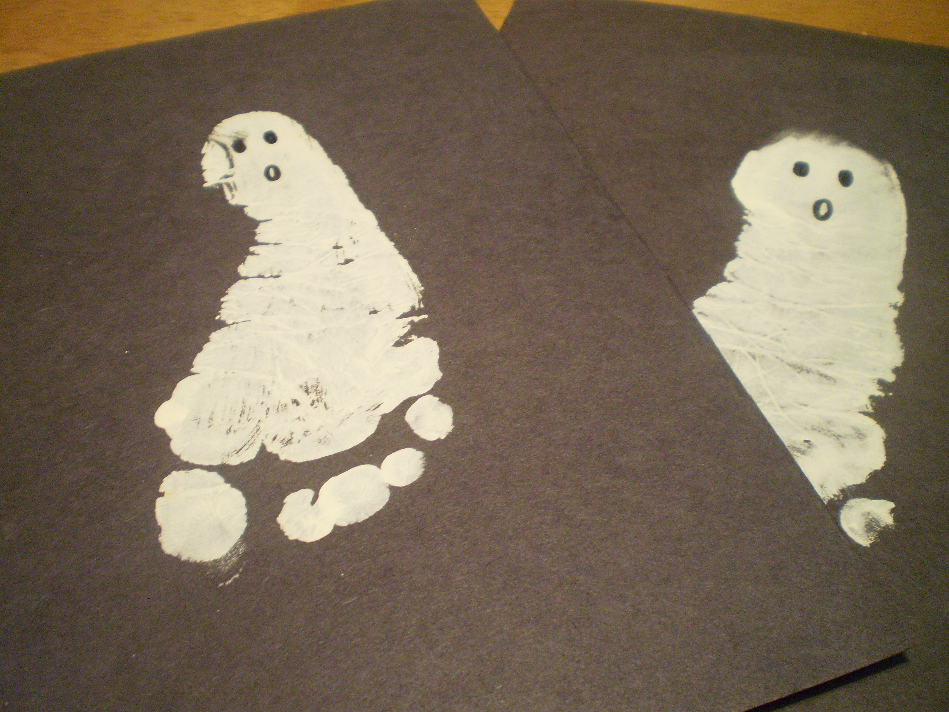 You could turn them into Halloween cards for grandparents, decorations, or wall hangings or just a sweet little reminder of how small they were that year. I love anything with hand or foot prints. So precious.