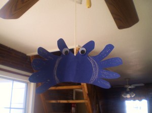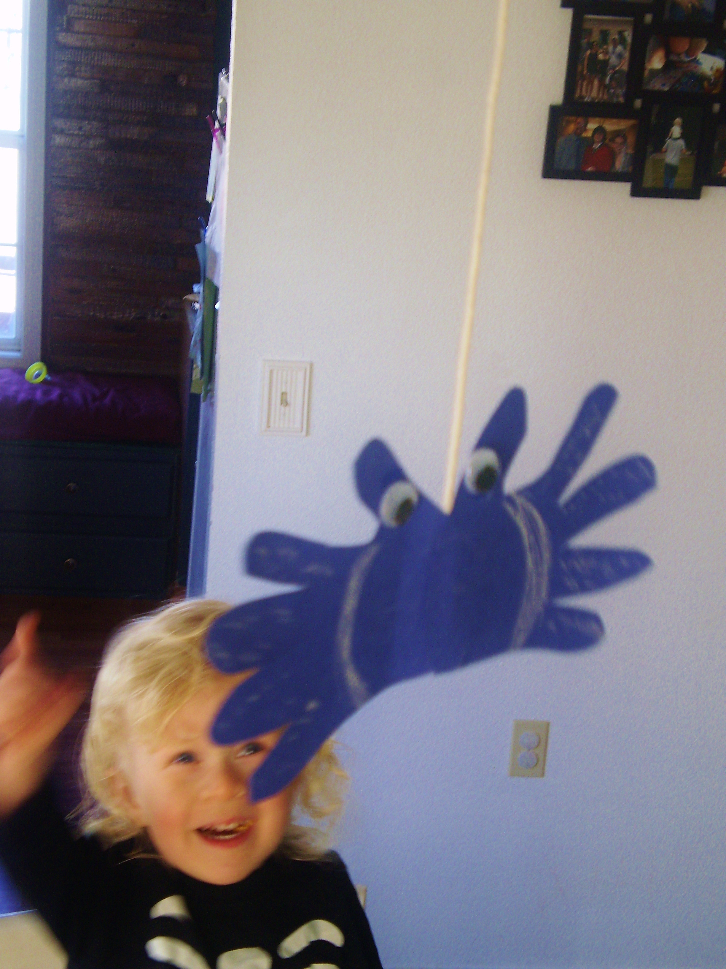 6. Give your spooky spider a web to dangle from and hang him somewhere as an adorable decoration! Ours kind of looks like a crab. Just noticed that. But you get the idea!