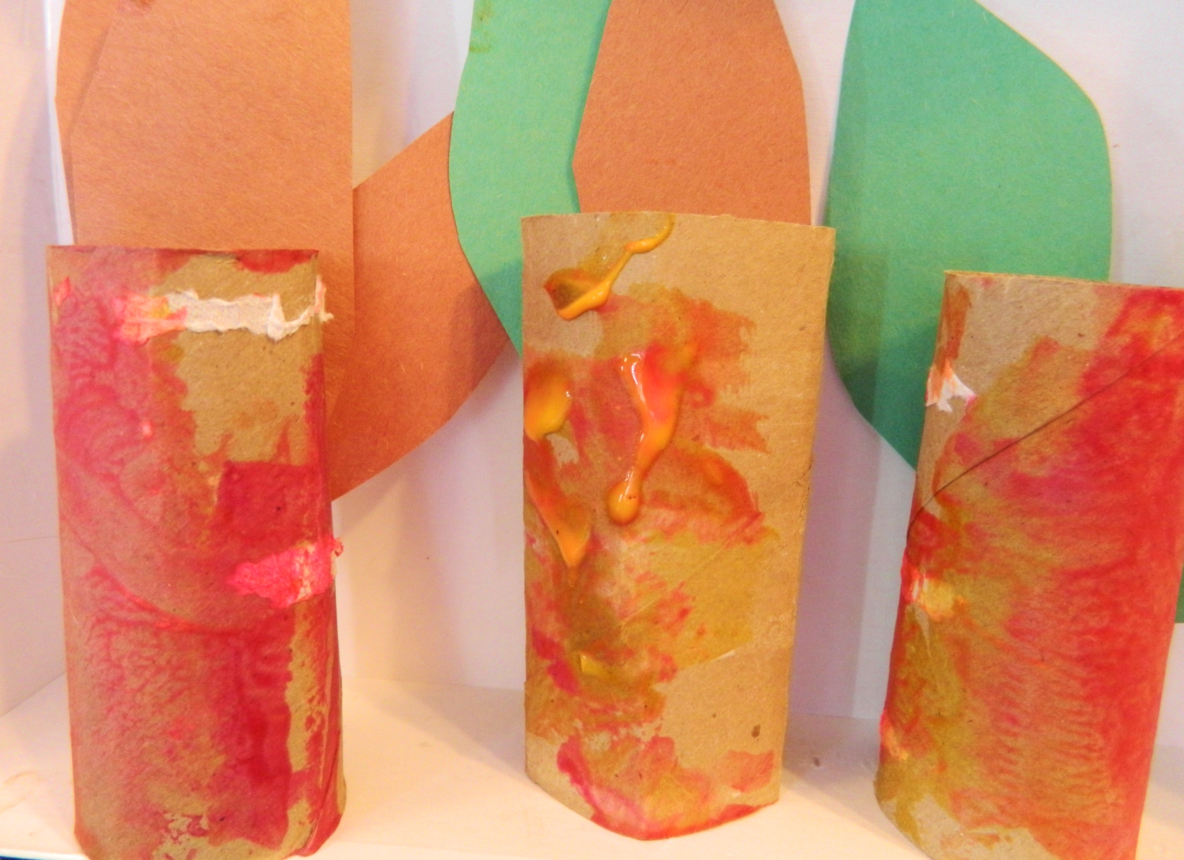 This craft only requires toilet paper rolls, paint, construction paper, glue or tape, and brushes or sponges. We used sponges for that “corny” look. …What?
