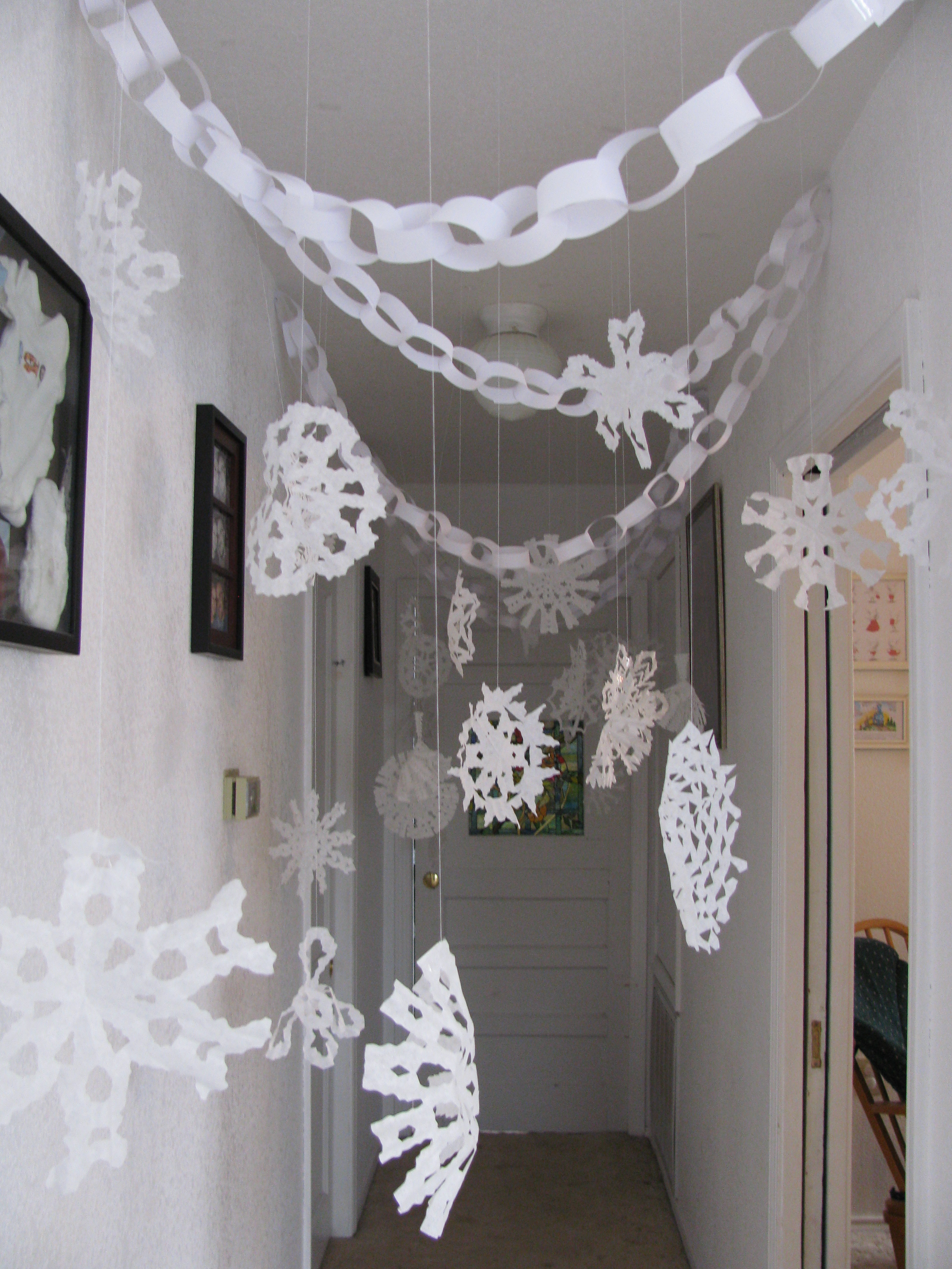 On Christmas Eve, before flying off to join Santa and work up his magic until next year, Jasper left us a beautiful snow creation in the hallway with over 50 handmade snow flakes and paper chains. Little still talks about the magical moment he woke up to this scene on Christmas morning.